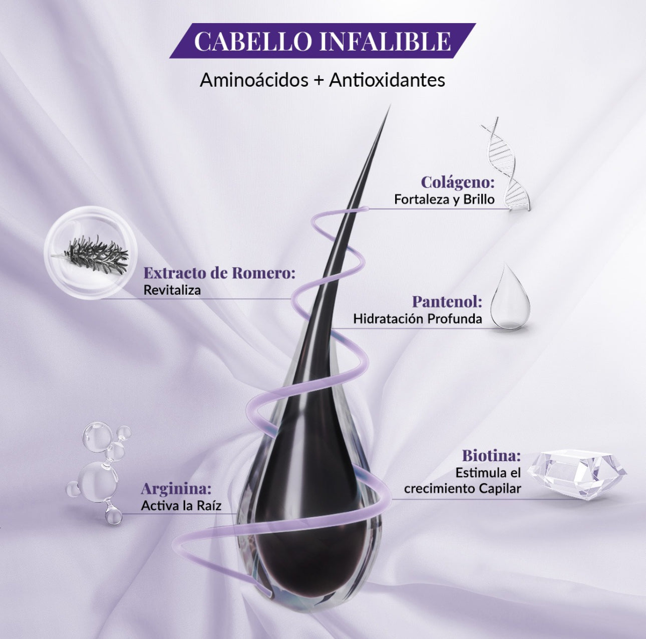 • Sensación de cabello más fuerte desde las primeras semanas.
